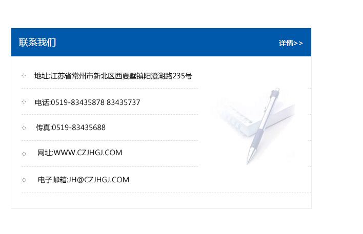 地址:常州市新北區(qū)友邦商務大廈1幢16、17層  電話:0519-85101652  傳真:0519-85112595  郵編:213022  網址:www.cz-jiayue_cn.gslzl.com  郵箱:xiajifengaa@163.com